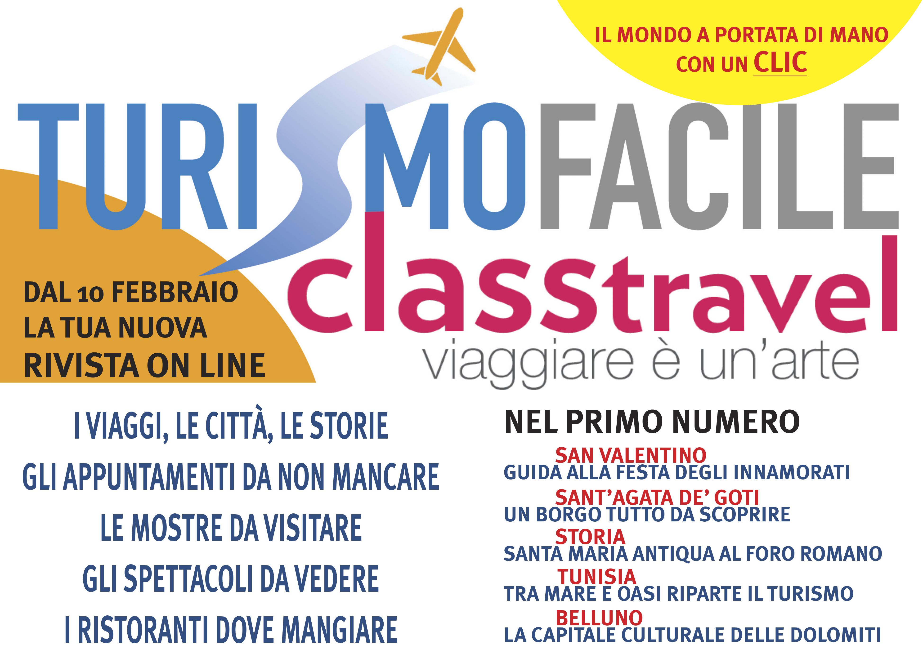 “Lavoro Facile” raddoppia. Grazie alla collaborazione con “Class Travel” nasce la nuova rivista on line “Turismo Facile” che si potrà sfogliare gratuitamente dal prossimo 10 febbraio sui siti http://www.lavorofacile.info/ e http://www.classtravel.it/.
